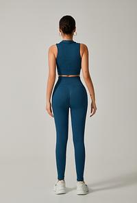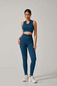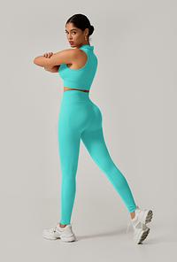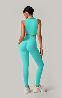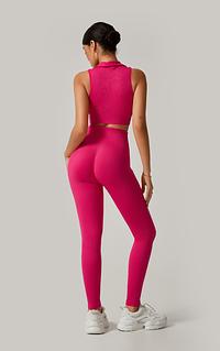 A calça cintura alta com efeito empina bumbum modela e valoriza as curvas, proporcionando um caimento impecável. O cropped com gola alta traz um toque sofisticado e esportivo ao look, garantindo conforto e firmeza.