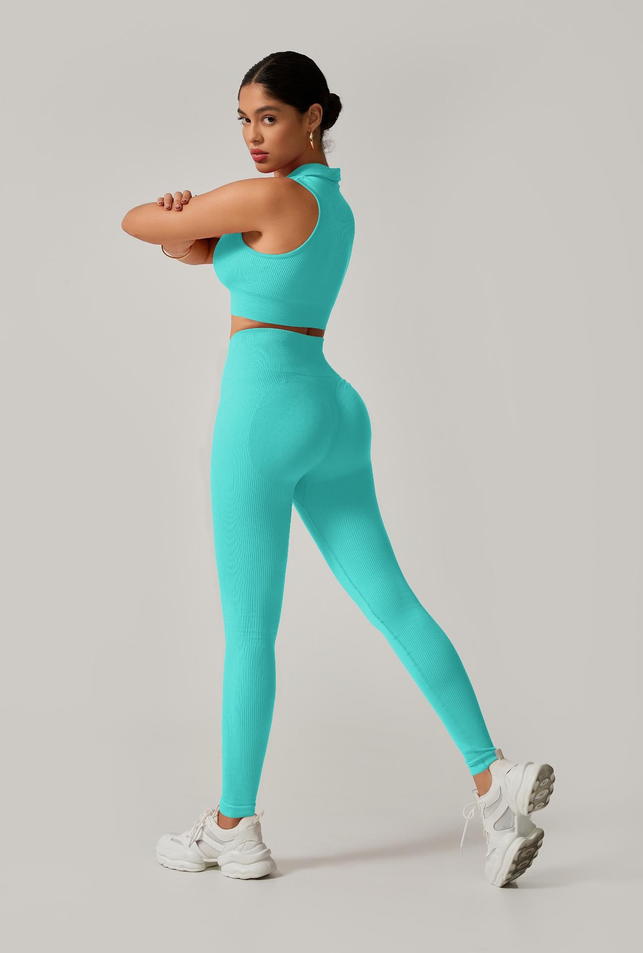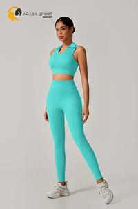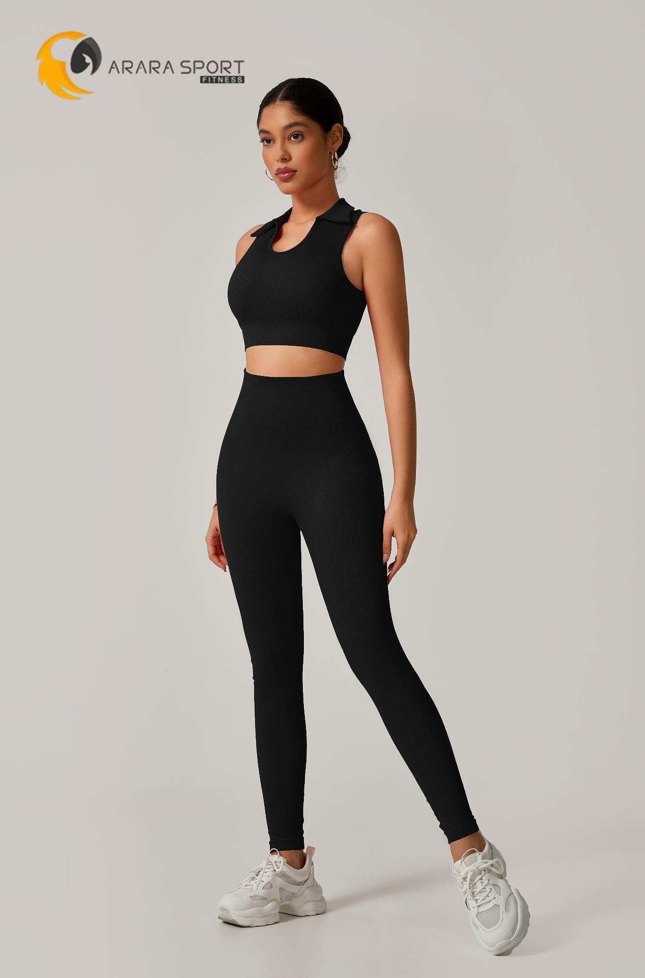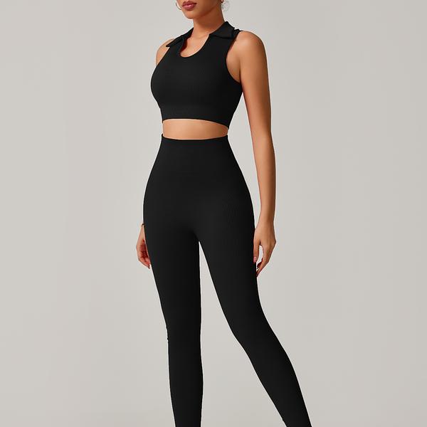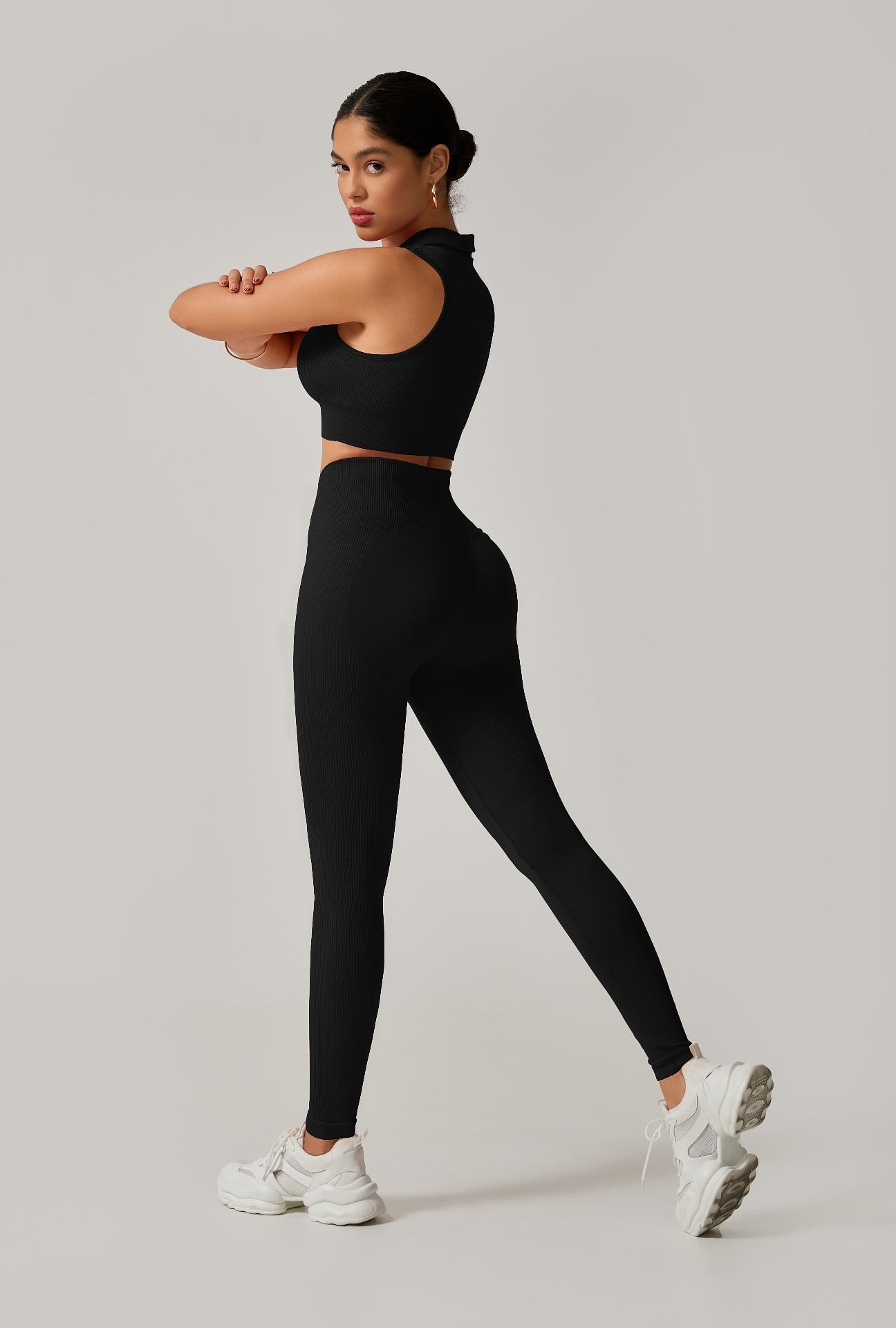 Conjunto Fitness Calça Cintura Alta + Cropped Gola Alta Canelado em Poliamida com Empina – Estilo e Modelagem Perfeita