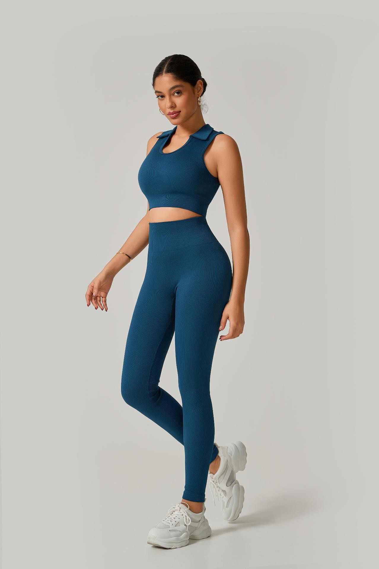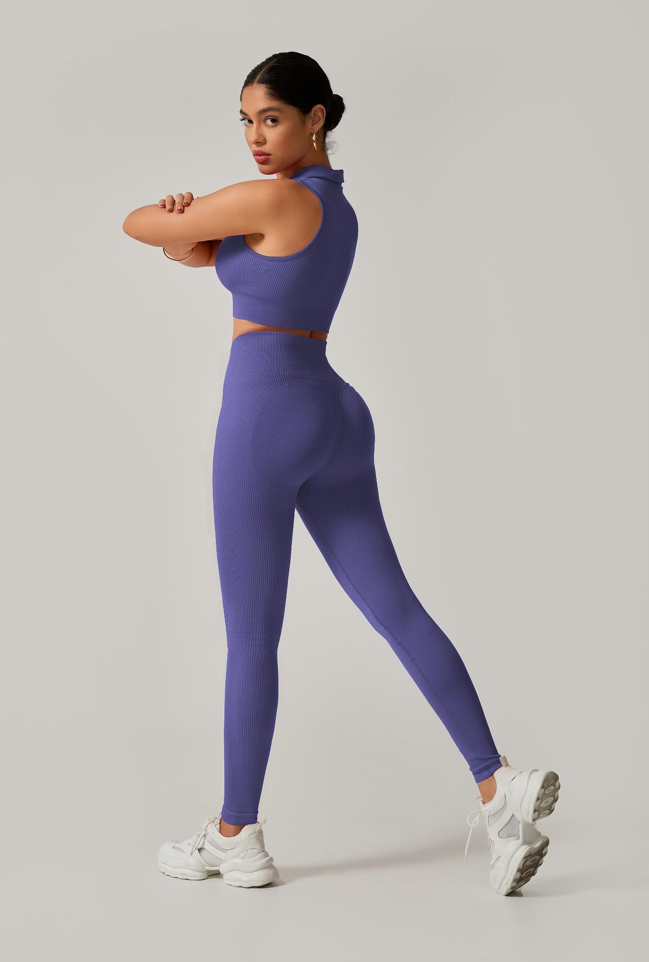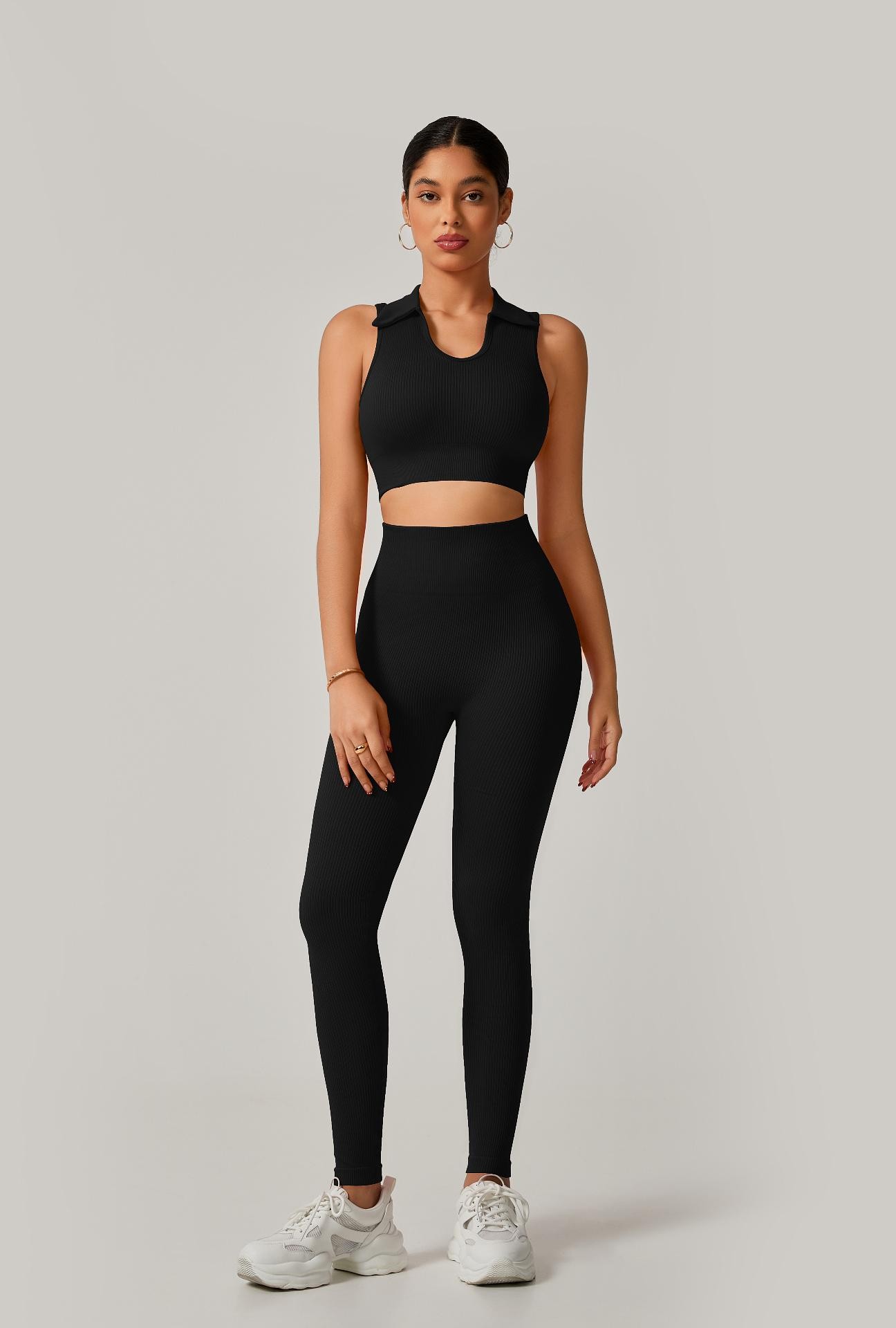 Conjunto Fitness Calça Cintura Alta + Cropped Gola Alta Canelado em Poliamida com Empina – Estilo e Modelagem Perfeita