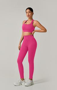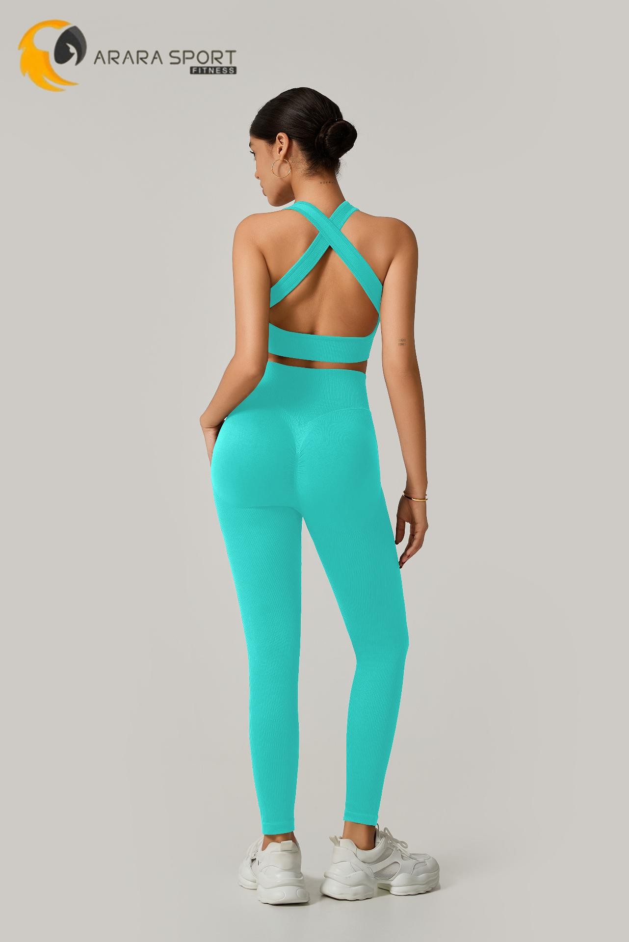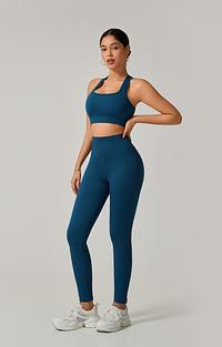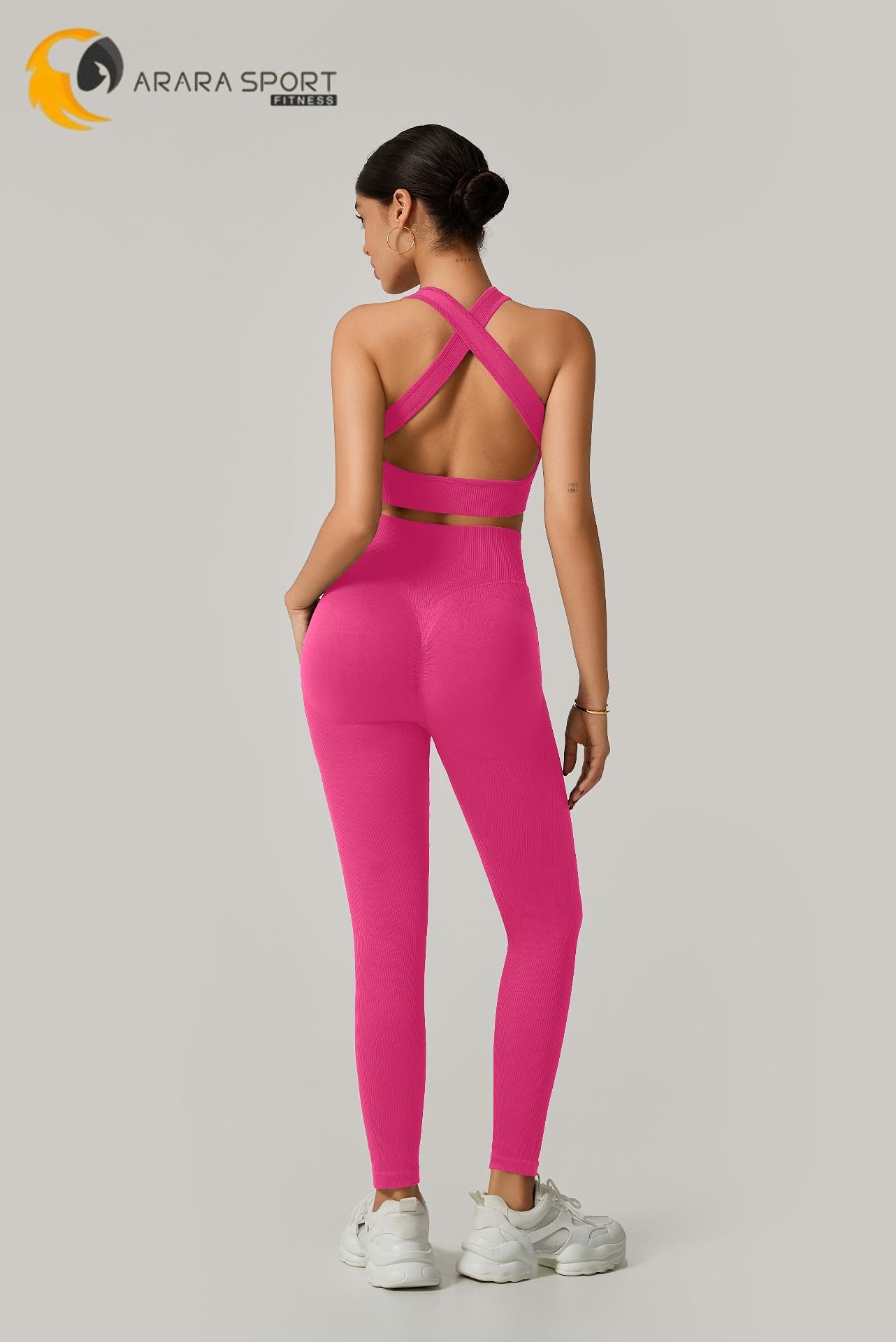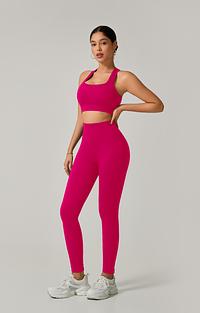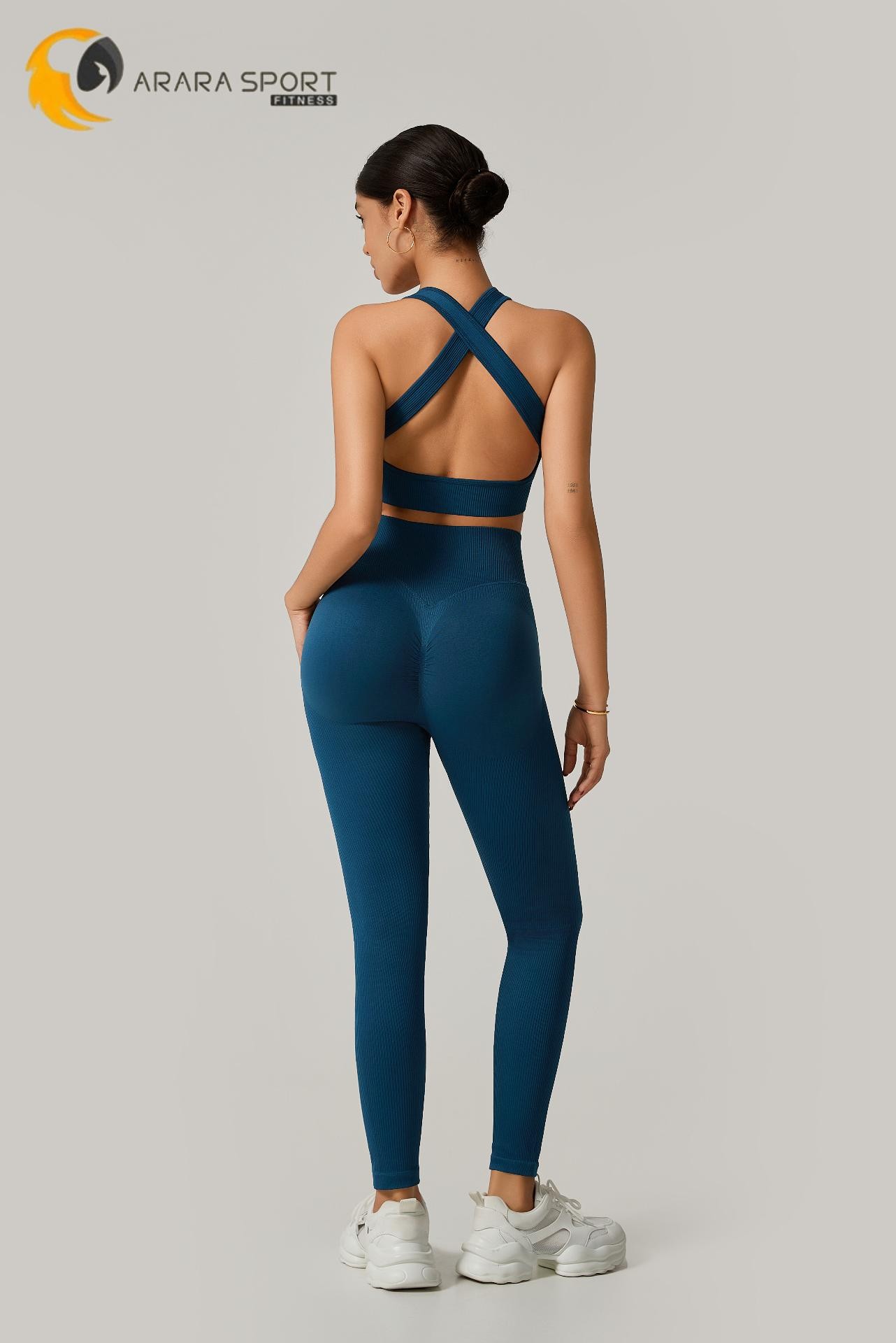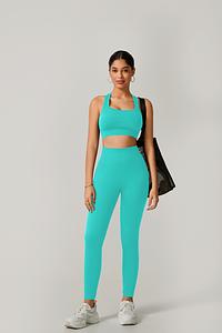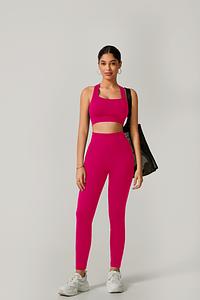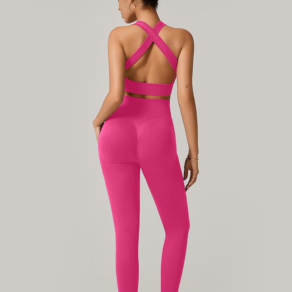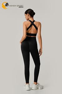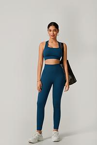 A legging de cintura alta com modelagem empina natural valoriza o corpo e oferece sustentação, enquanto o top de alça grossa com costas cruzadas garante firmeza e conforto em cada exercício.