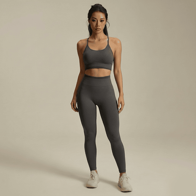 Treine com conforto e elegância com esse conjunto pensado para quem prefere um visual mais discreto, sem recortes empina bumbum. Feito em poliamida premium, o conjunto conta com top com espaço para bojo e calça legging de cintura alta, com excelente elasticidade e toque macio, ideal para treinos e também para o dia a dia.