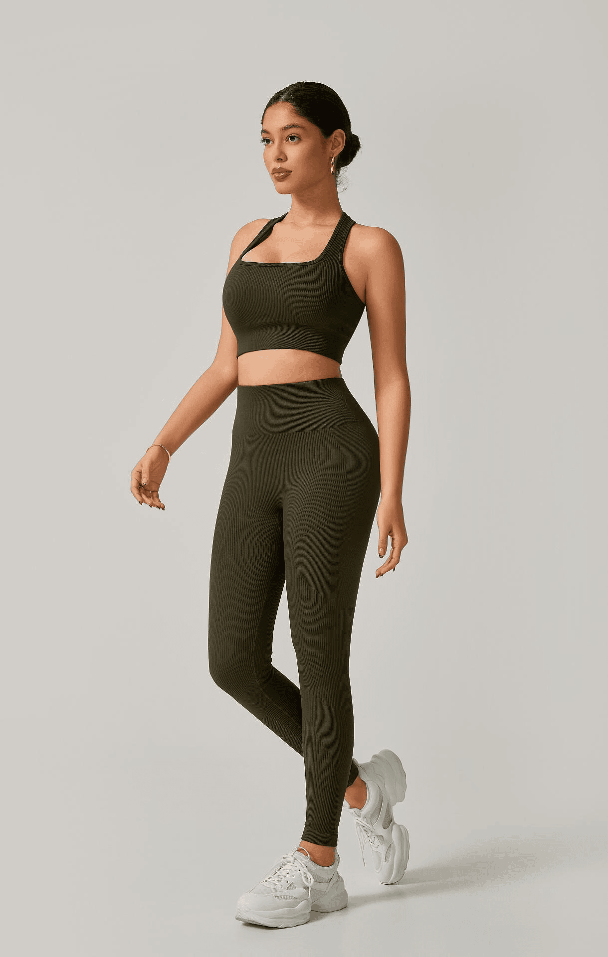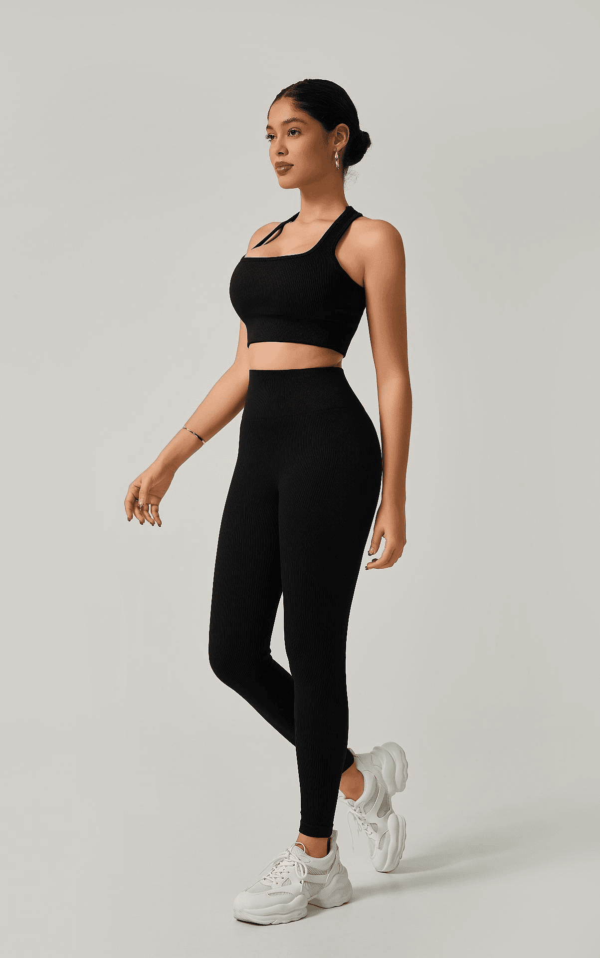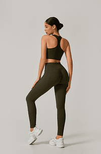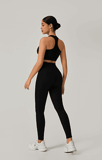 Estilo, conforto e valorização do corpo em um só conjunto! Produzido em poliamida canelada premium, esse modelo conta com top com espaço para bojo e calça legging de cintura alta com recorte anatômico que empina o bumbum. O tecido canelado é encorpado, elástico e com toque macio, ideal para treinos ou looks casuais com muito mais atitude.