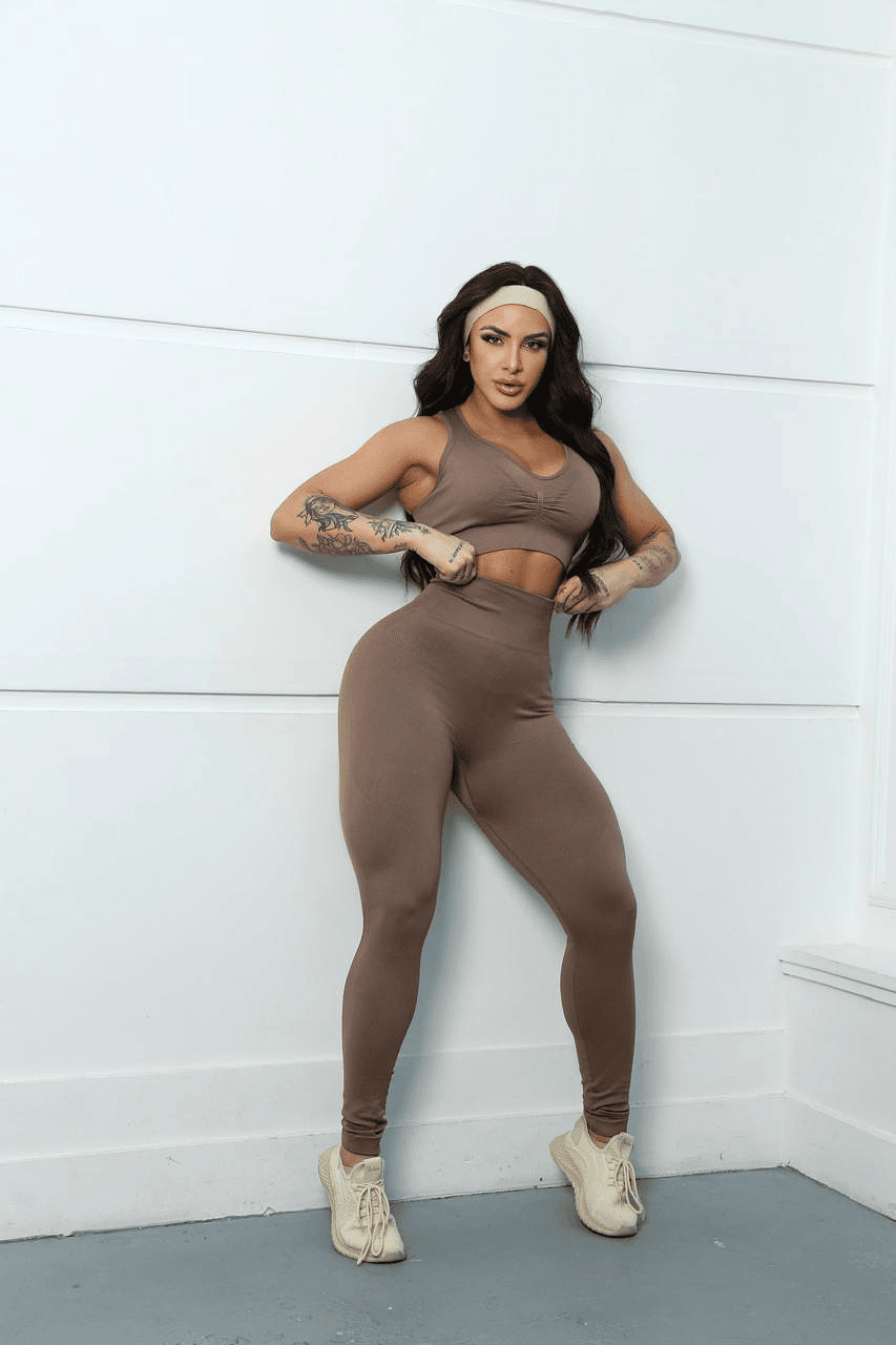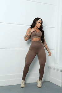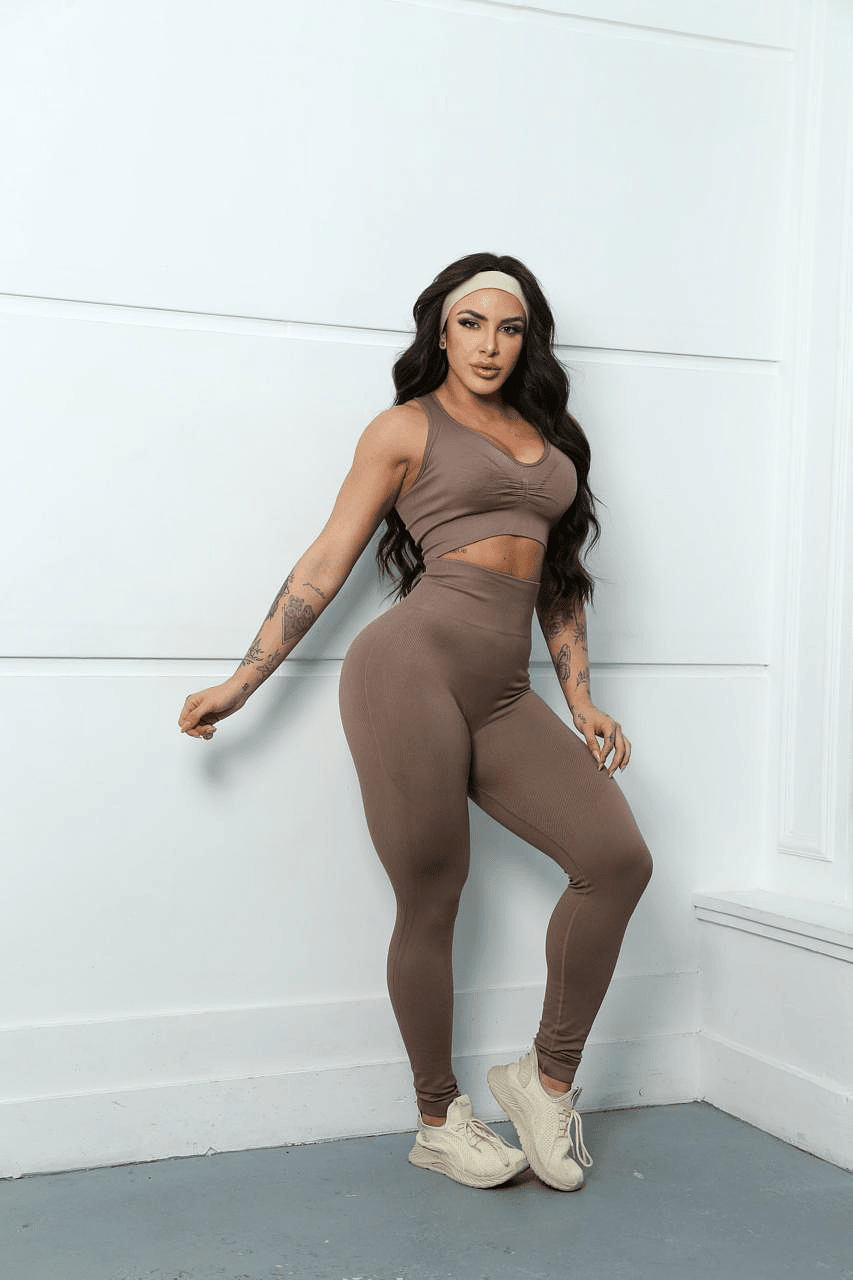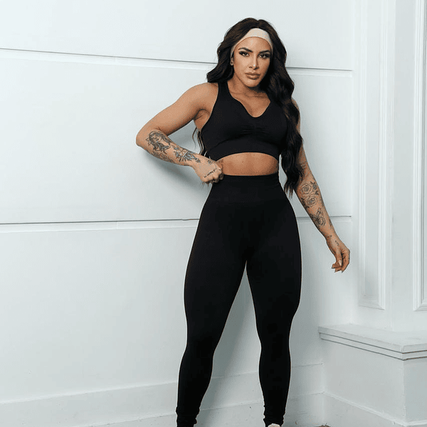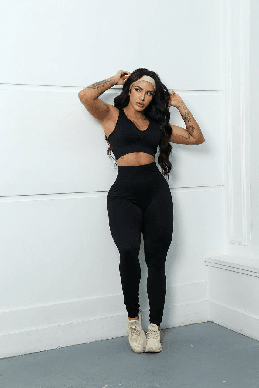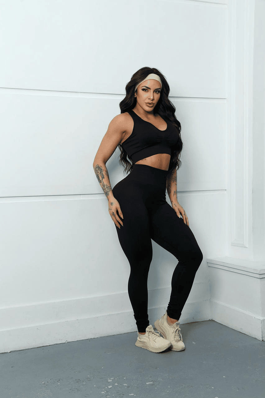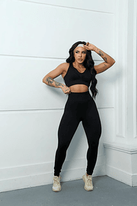 Treine com conforto e elegância com esse conjunto pensado para quem prefere um visual mais discreto, sem recortes empina bumbum. Feito em poliamida premium, o conjunto conta com top com espaço para bojo e calça legging de cintura alta, com excelente elasticidade e toque macio, ideal para treinos e também para o dia a dia.
