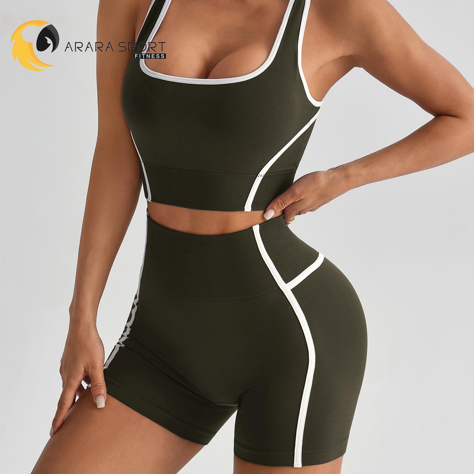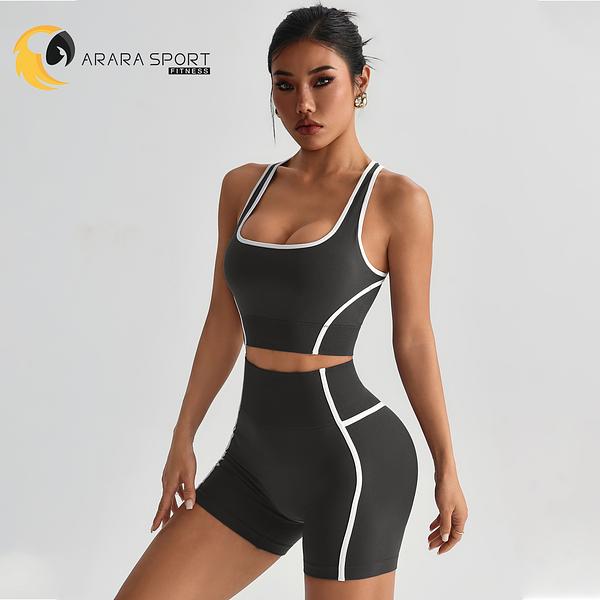 Conjunto de Short e Top Nadador Com Abertura nas Costas Poliamida Premium Sem Costura Academia Sem Empina Fitness