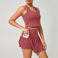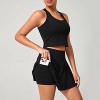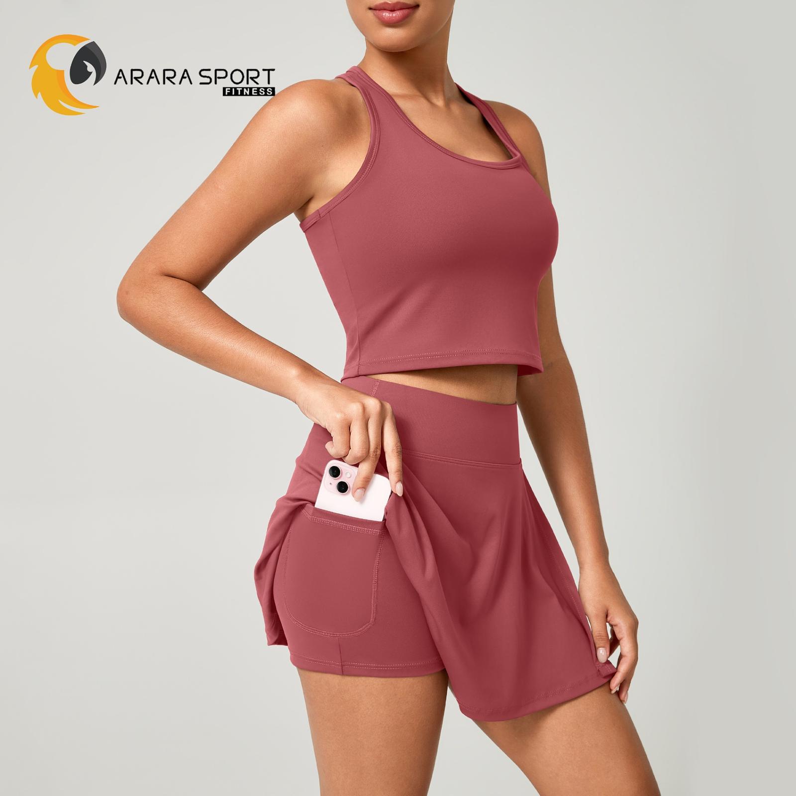 Conjunto Fitness Short Saia + Top Nadador Poliamida Premium com Bolso Interno – Conforto e Estilo