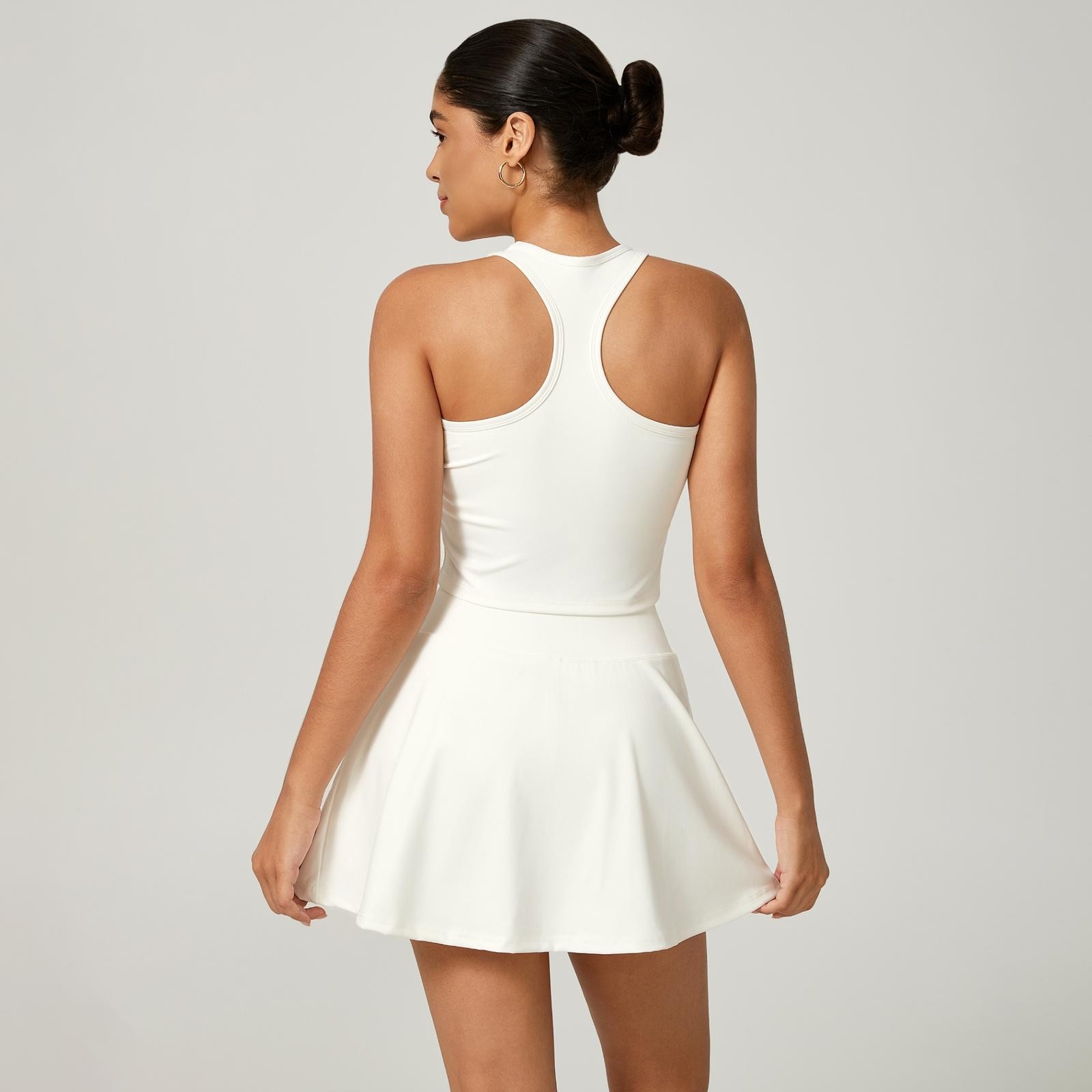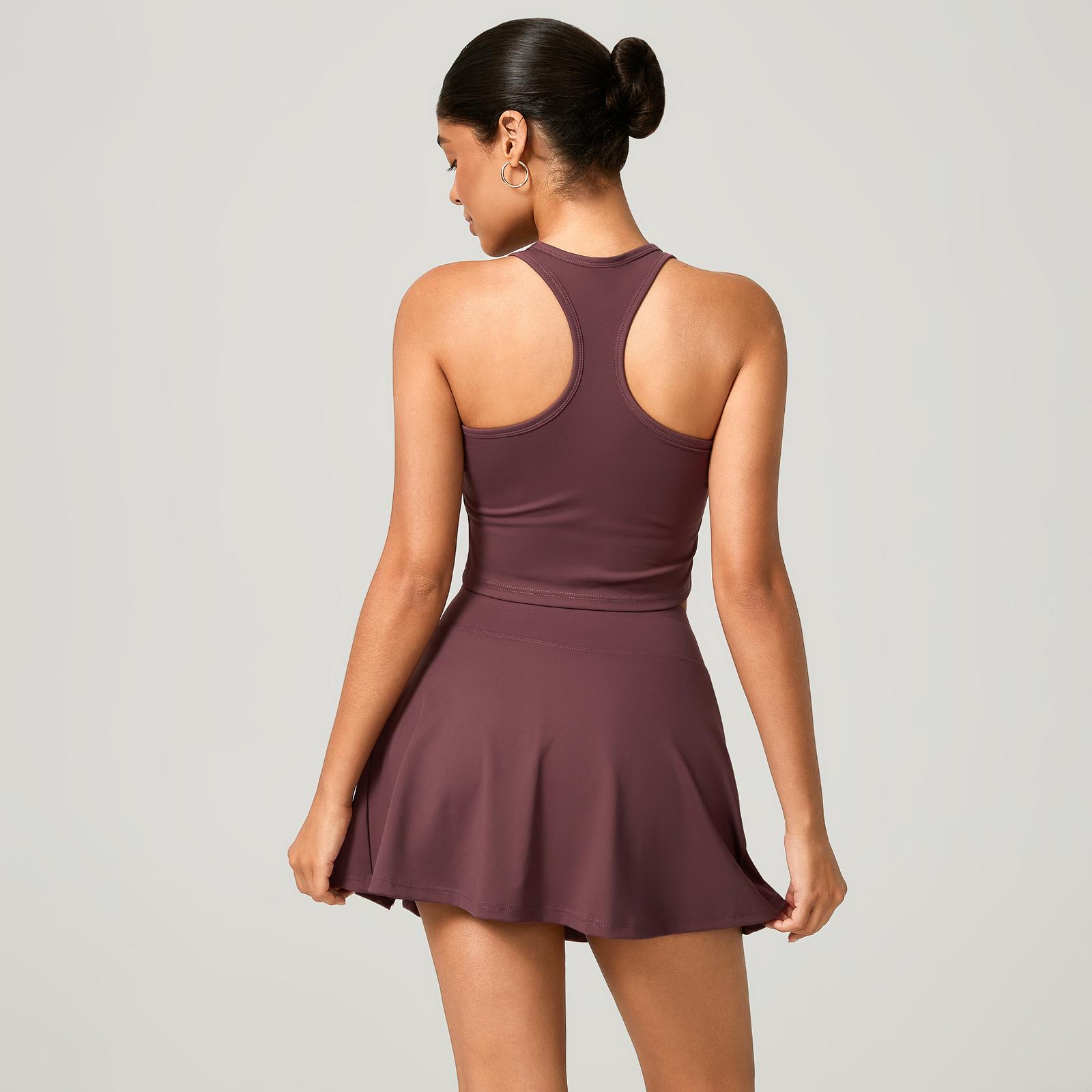 O short saia traz um visual moderno e feminino, com short interno embutido para mais segurança e conforto. Conta ainda com bolso interno funcional, ideal para guardar celular, chave ou pequenos itens. Já o top nadador garante ótima sustentação, firmeza e mobilidade durante os exercícios.