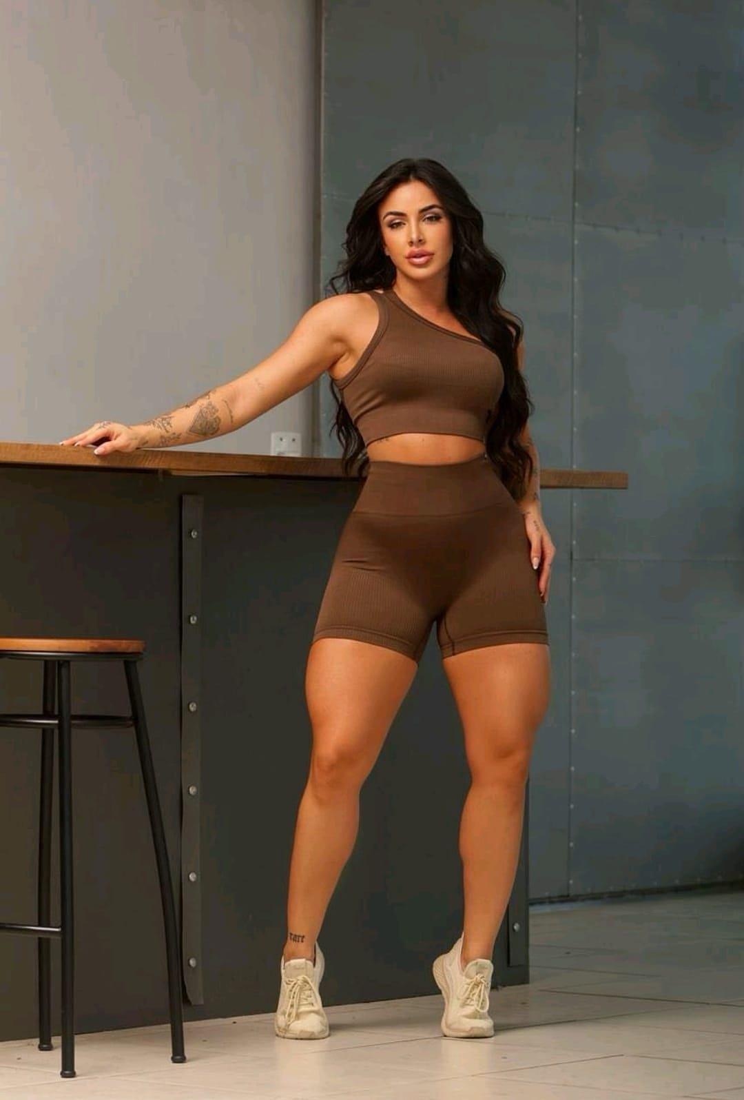 Seja no treino ou no dia a dia, esse conjunto é a escolha certa para quem busca conforto, qualidade e estilo.Material canelado, com toque macio e elasticidade ideal, ele acompanha seus movimentos sem marcar. O top possui espaço para bojo e o short tem cintura alta com leve compressão, garantindo segurança e modelagem sem empinar o bumbum.