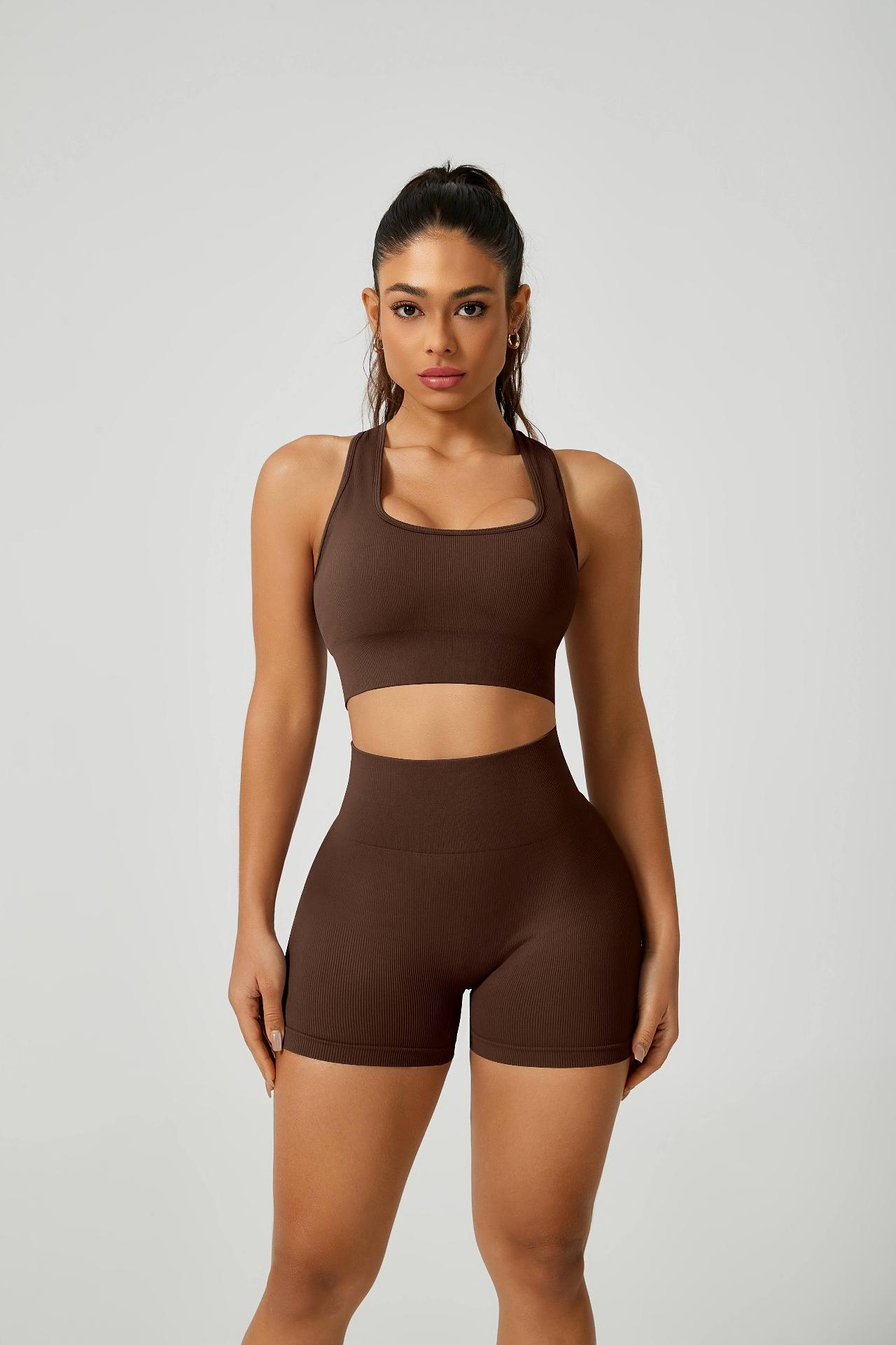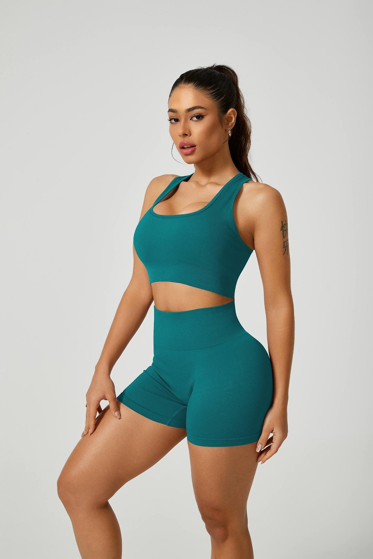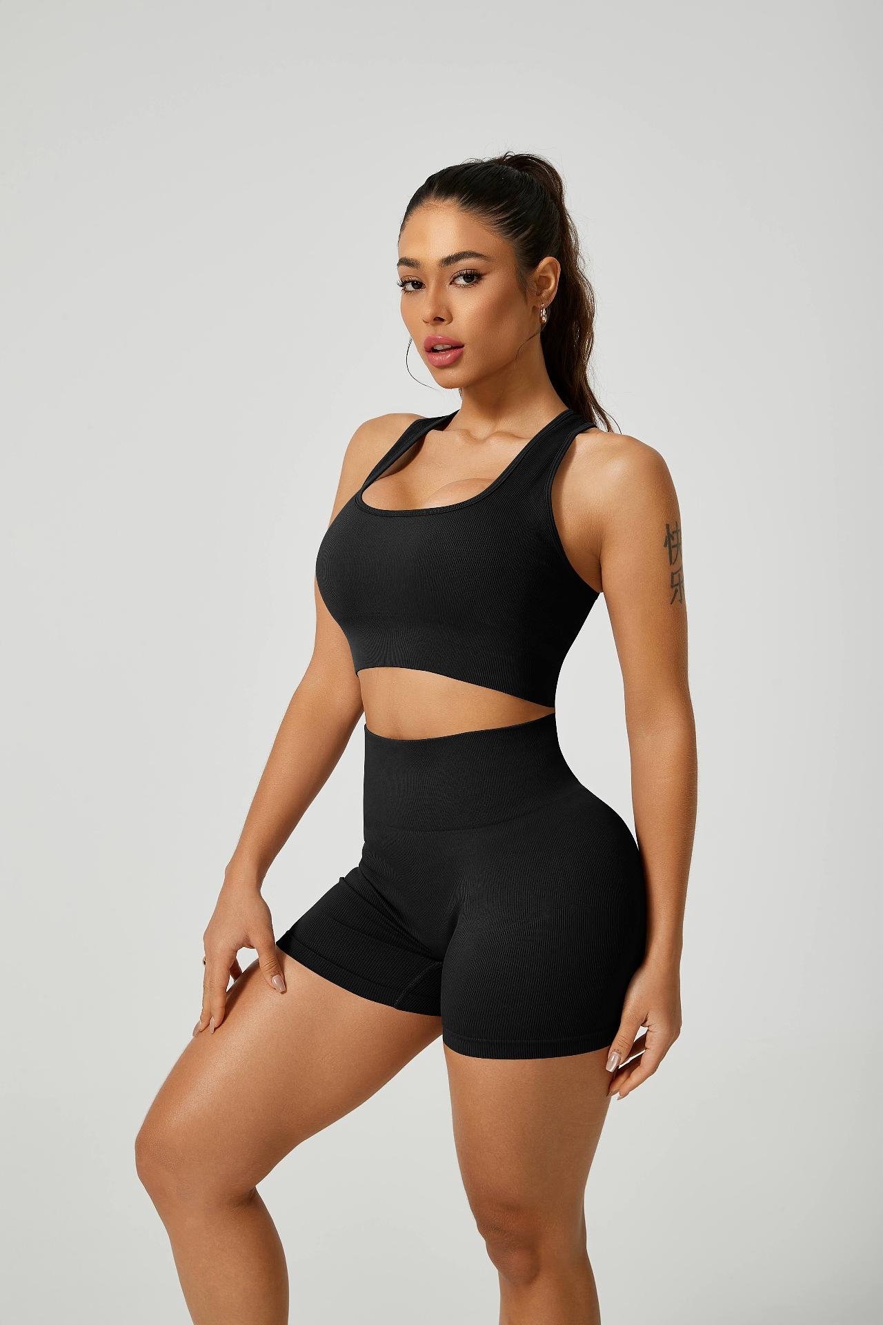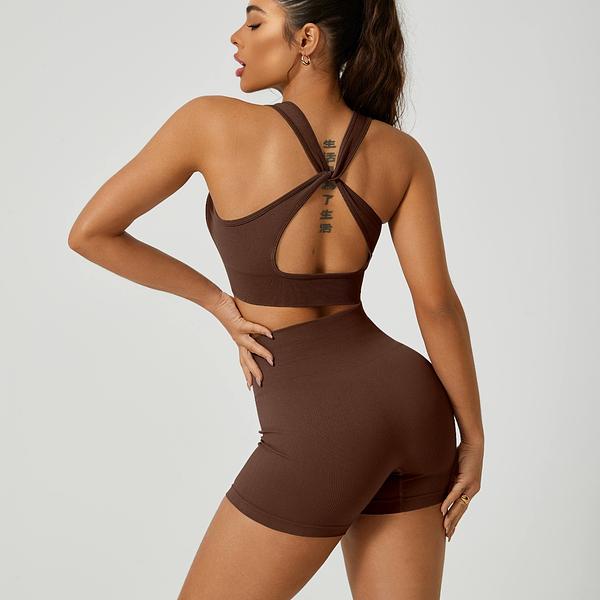 Conjunto Fitness Short Cintura Alta + Top Costa Nua em Poliamida – Conforto e Liberdade nos Treinos