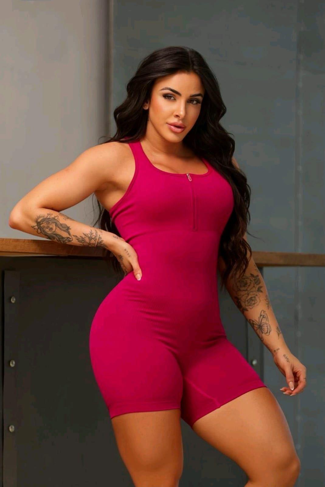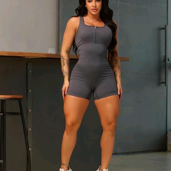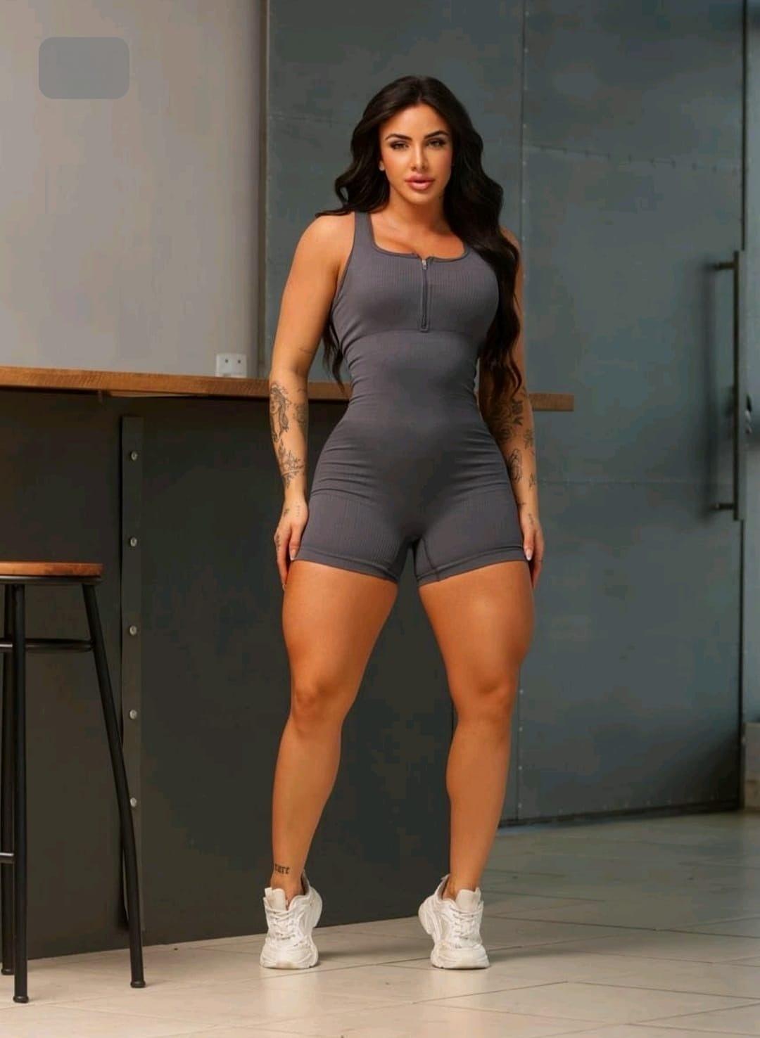 🔥 Macaquinho Fitness com Zíper – Canelado 🔥