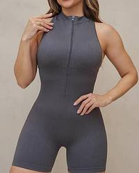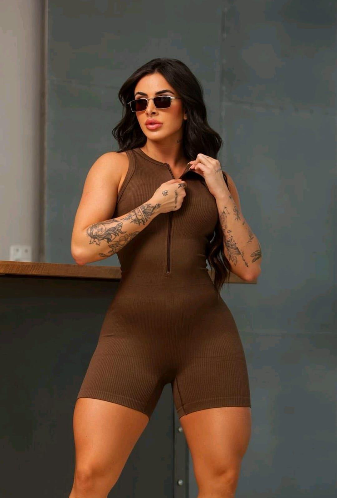 🔥 Macaquinho Fitness com Zíper – Canelado 🔥