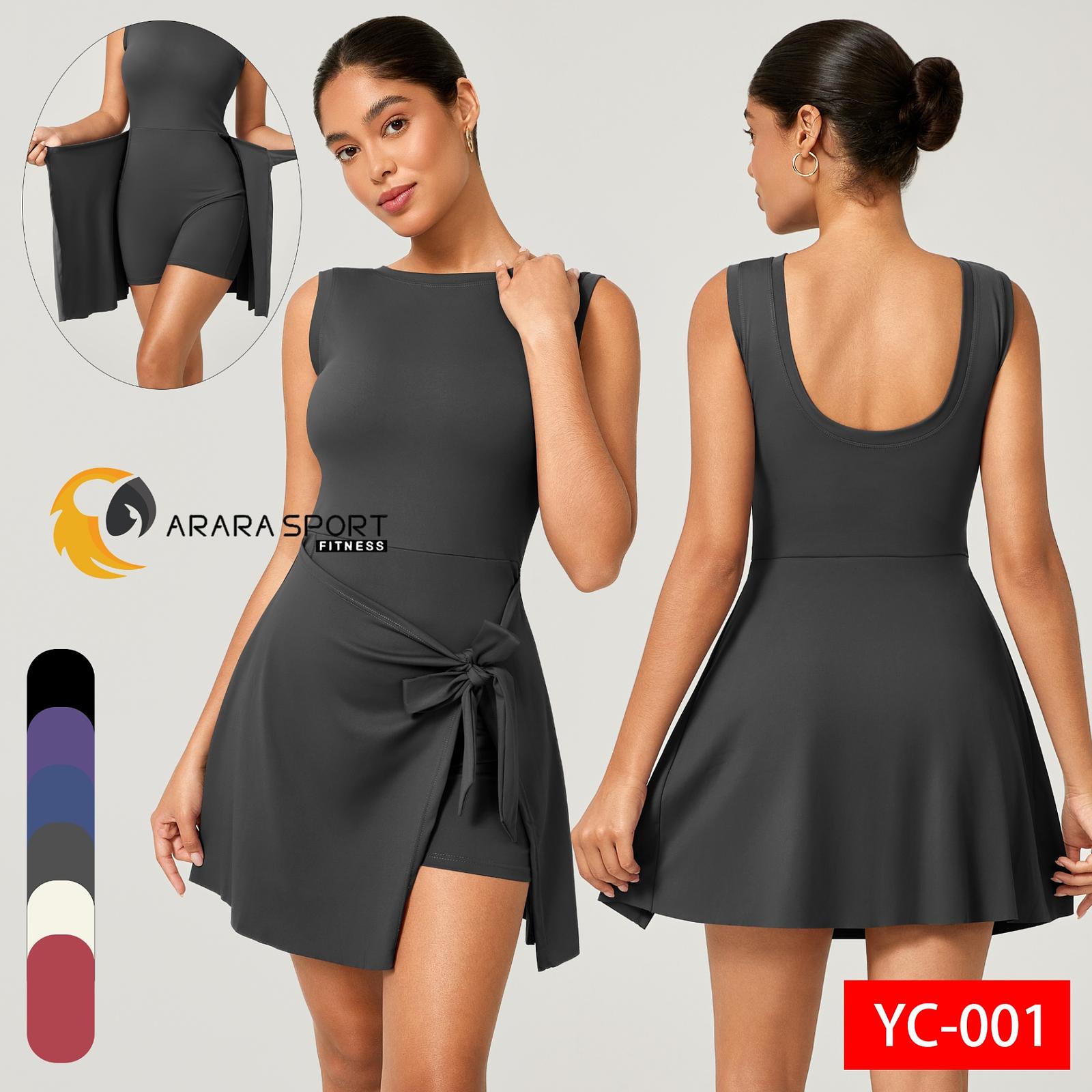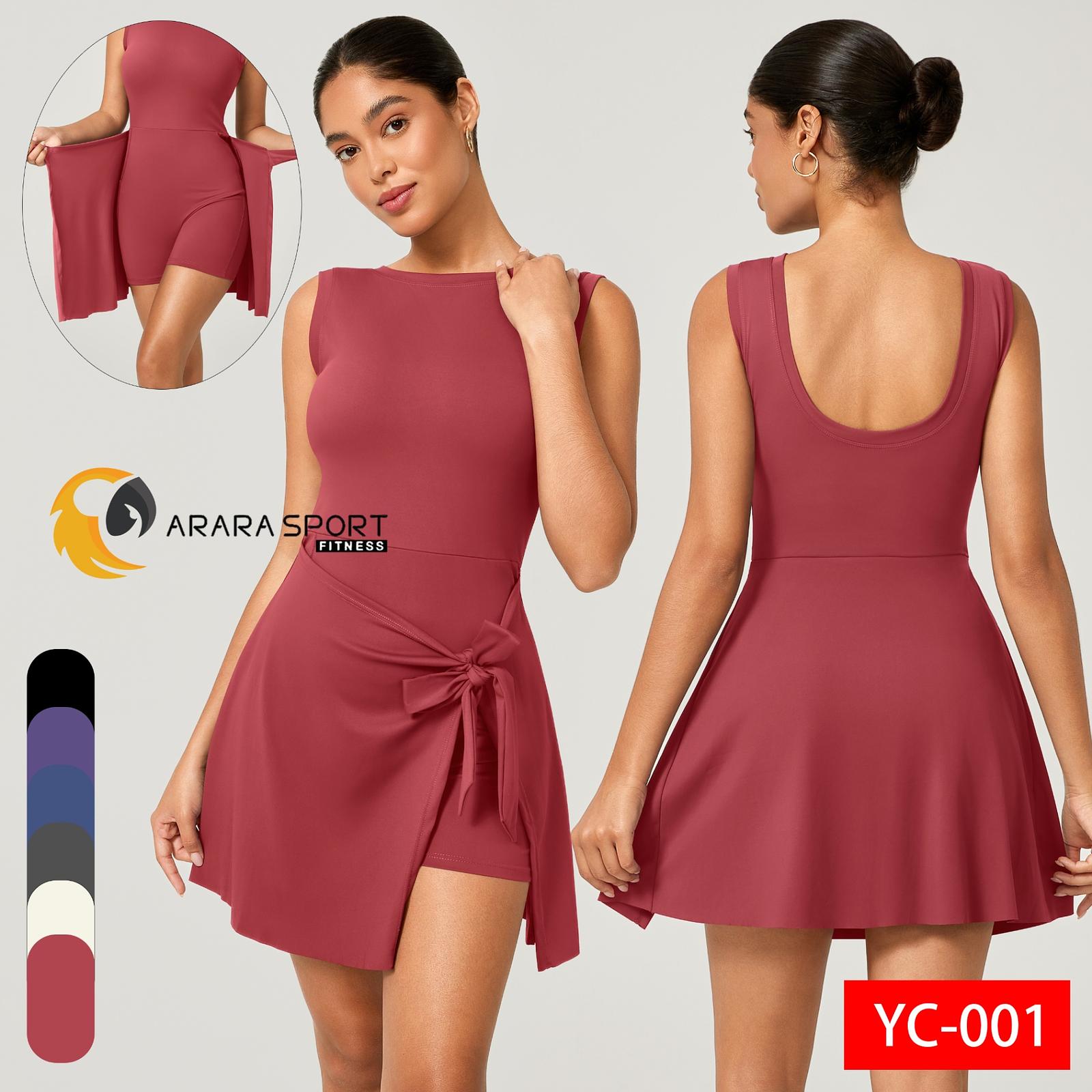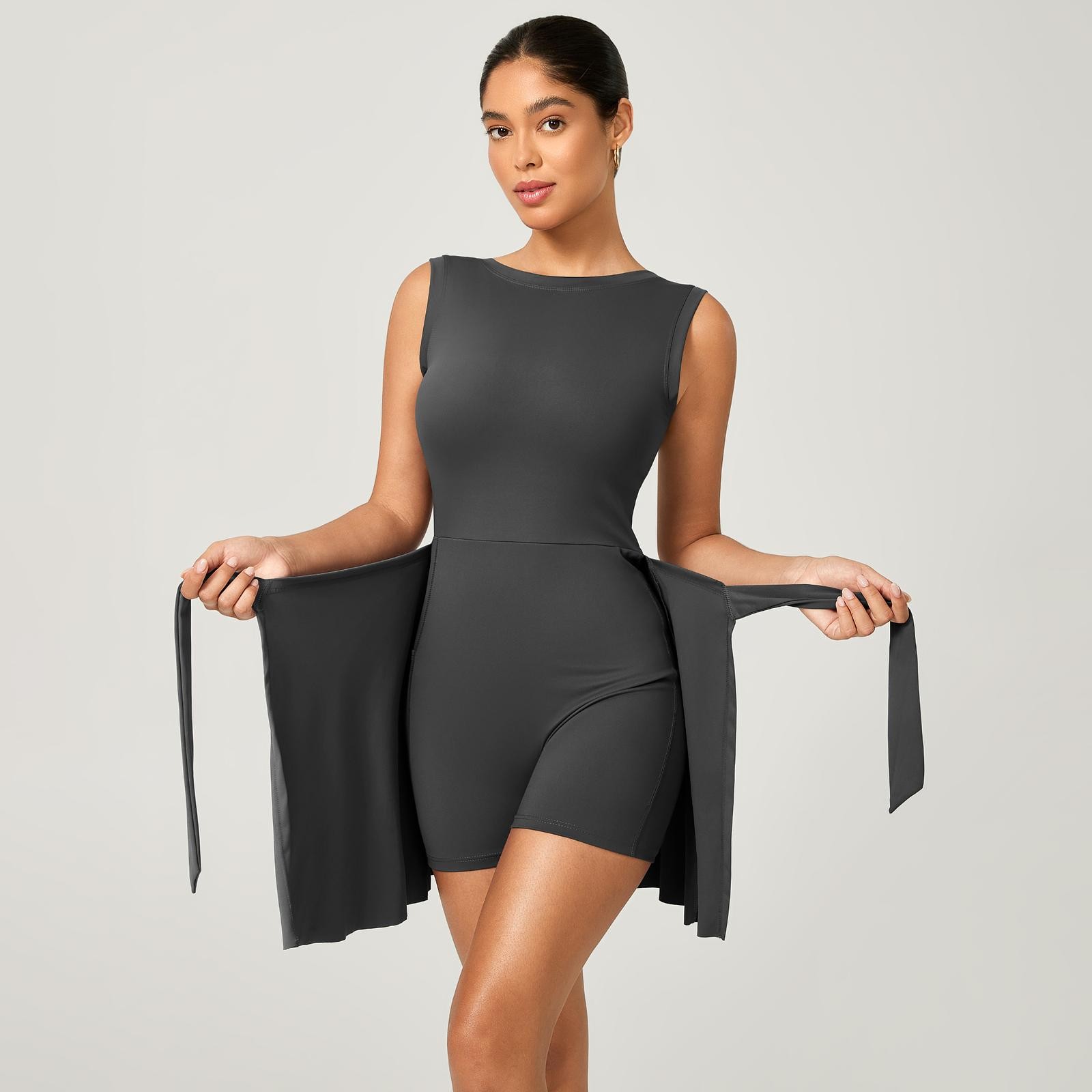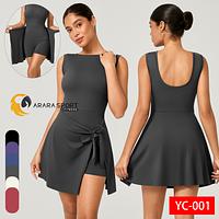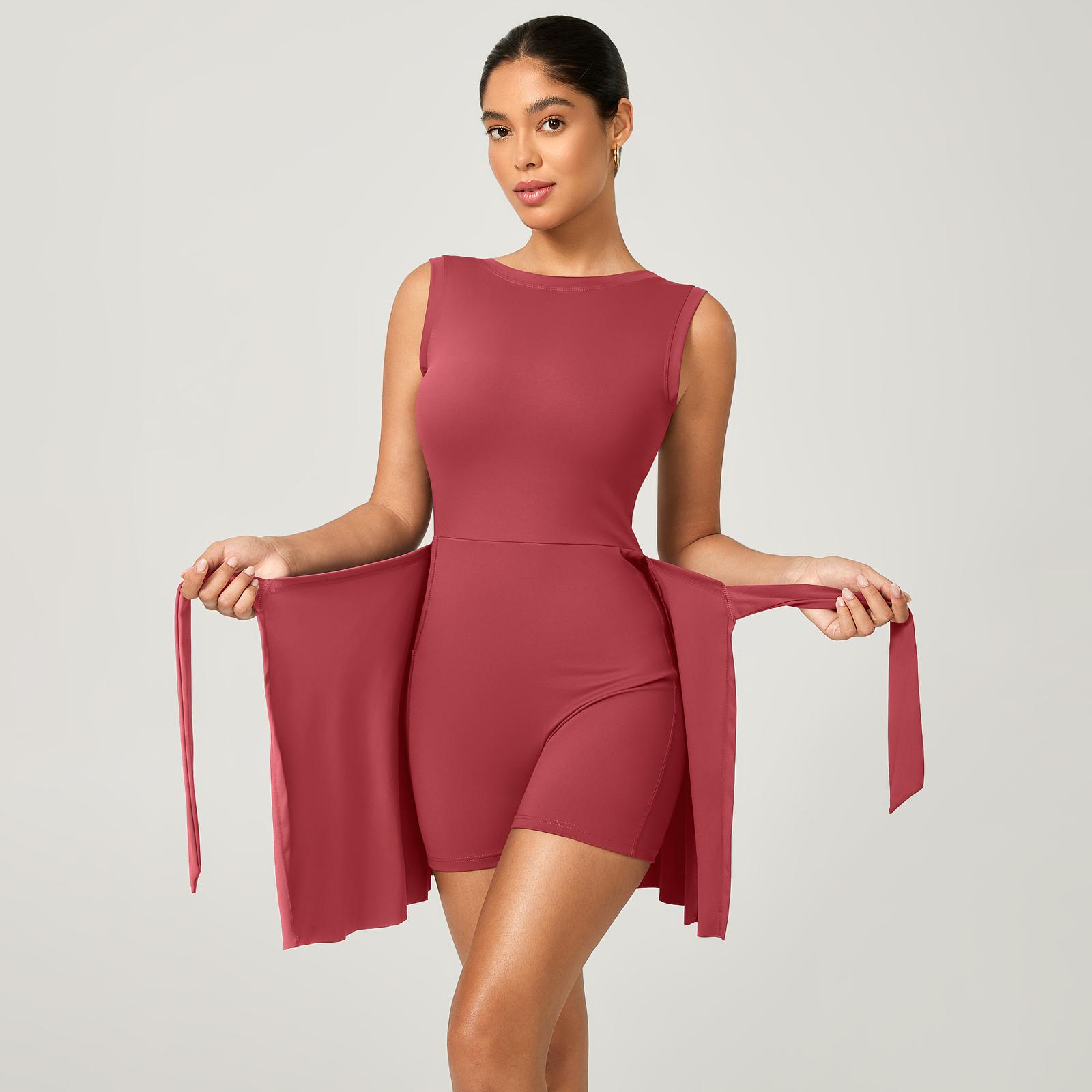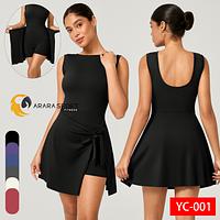 Macaquinho Fitness Poliamida Premium com Saia de Amarrar + Bolso Interno – Decote nas Costas