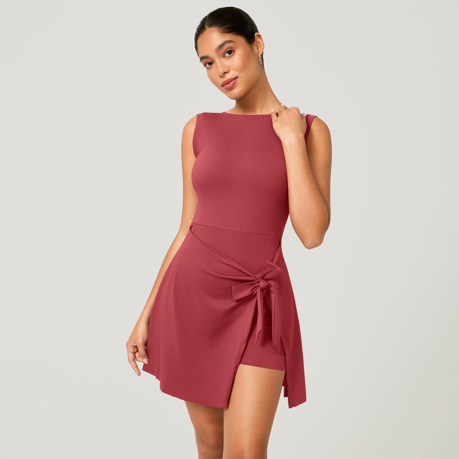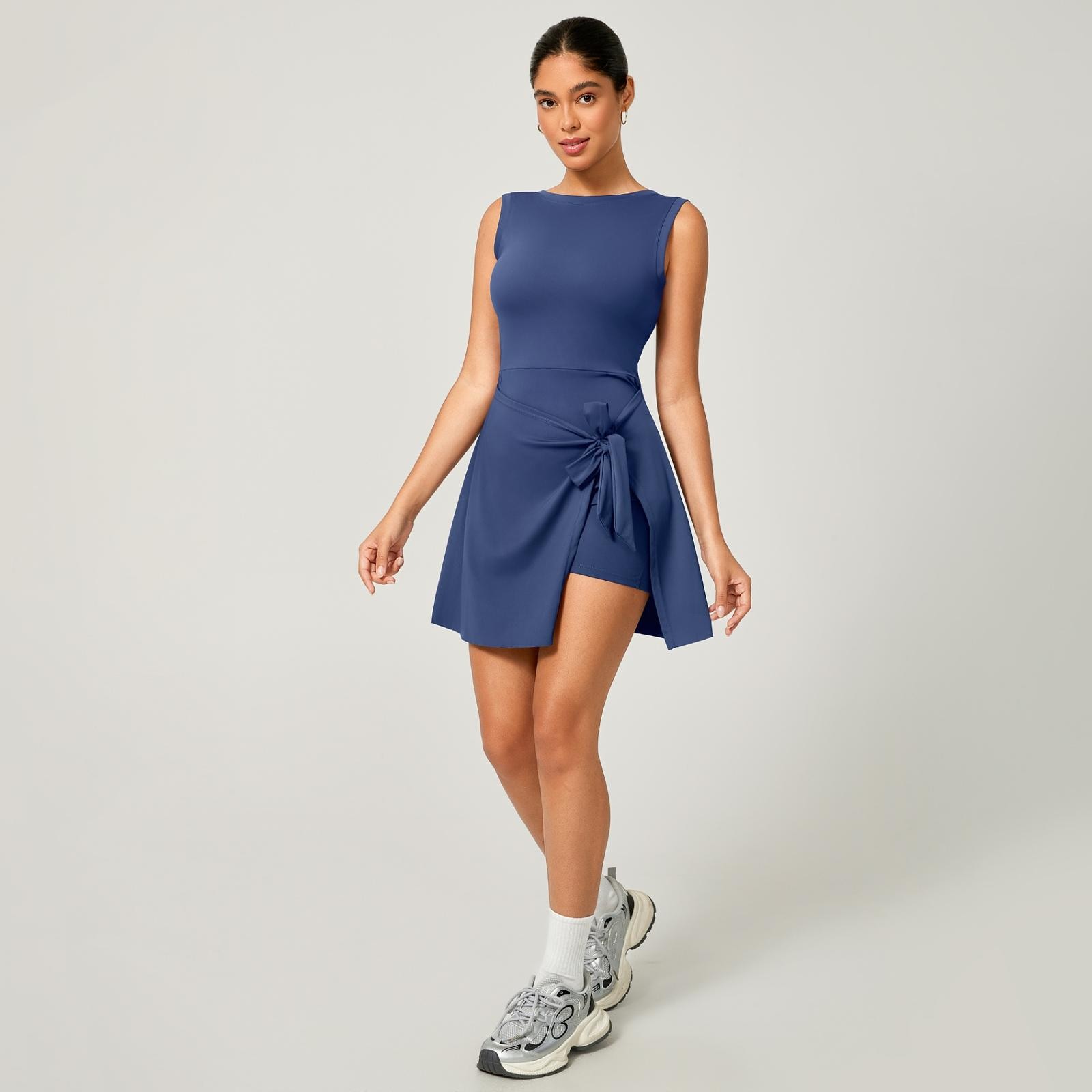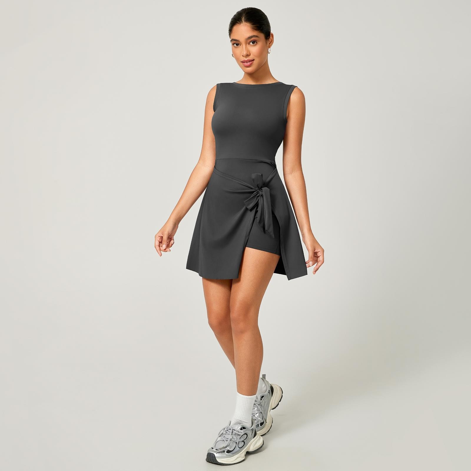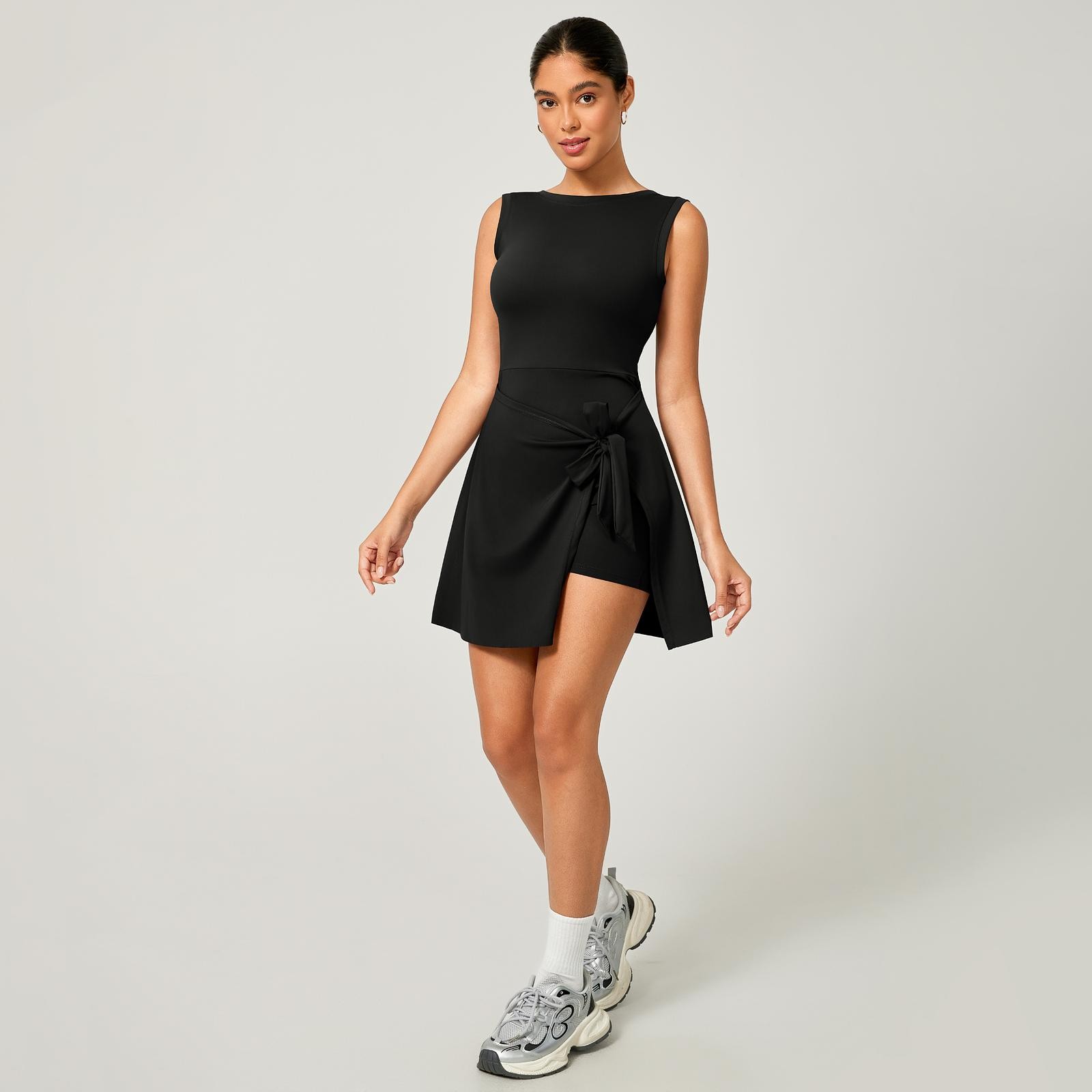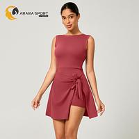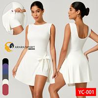 Macaquinho Fitness Poliamida Premium com Saia de Amarrar + Bolso Interno – Decote nas Costas