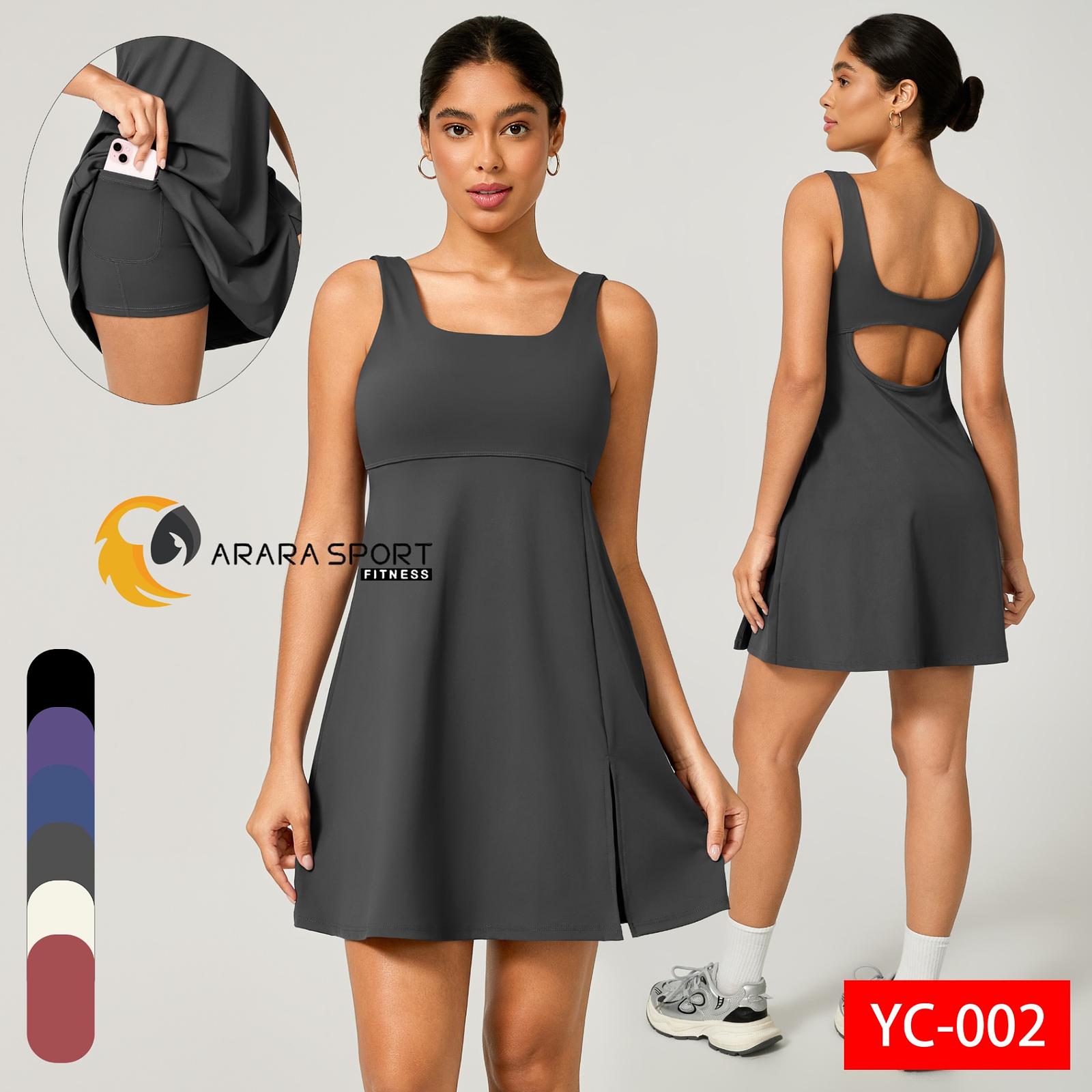 Vestido Fitness Poliamida Premium com Short Interno e Bolso – Decote nas Costas