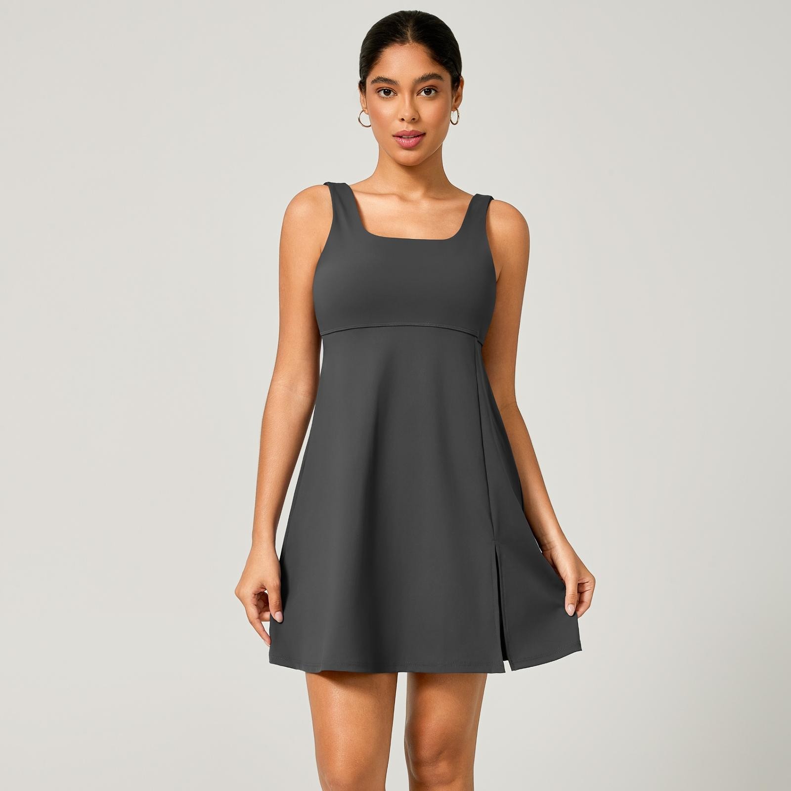 O Vestido Fitness em Poliamida Premium com short interno foi desenvolvido para quem quer treinar com liberdade de movimento, segurança e um visual moderno e elegante.